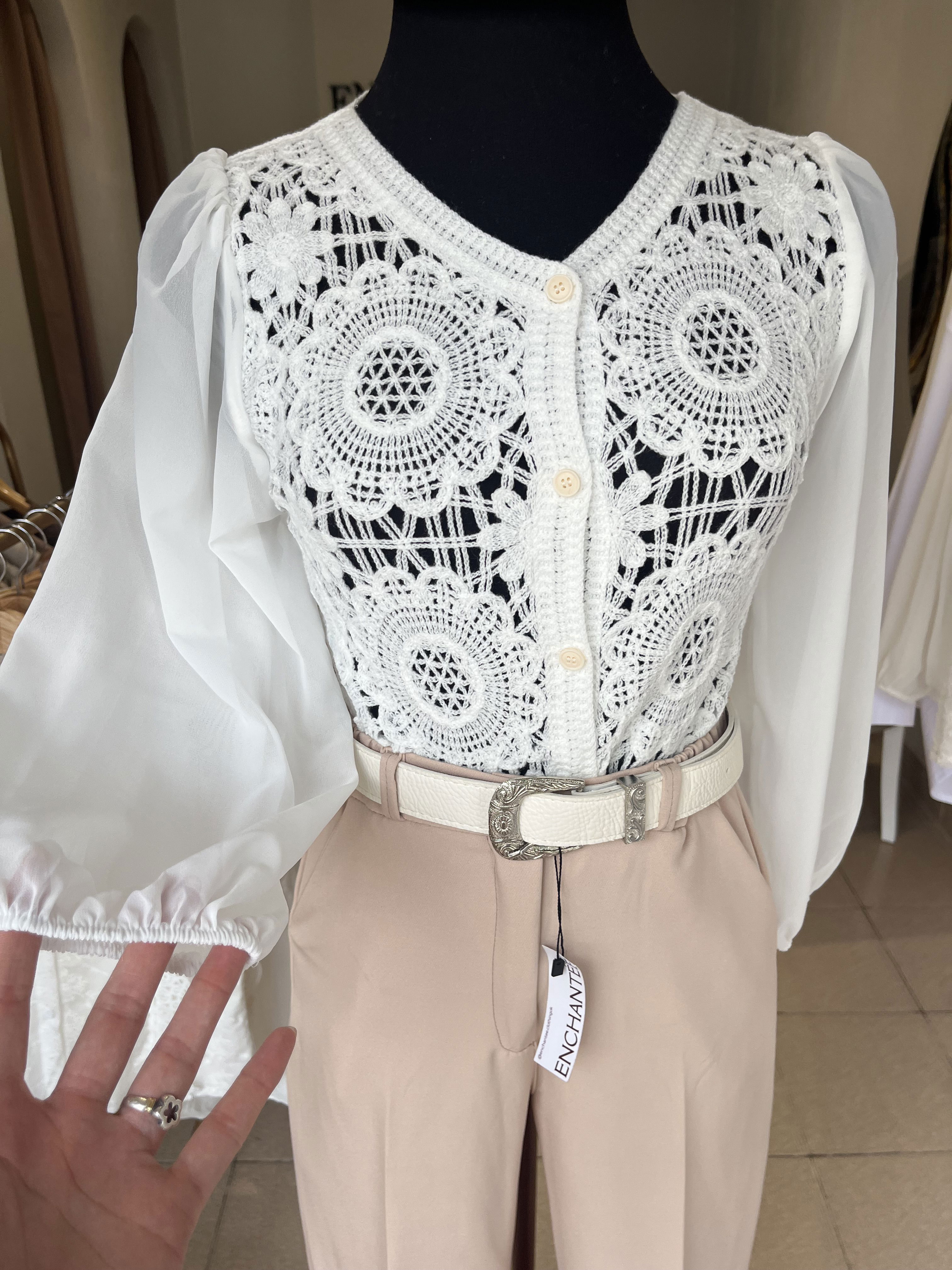 TIENE ELÁSTICOS EN PUÑO, CON BOTONES Y SE PUEDE USAR ABIERTA