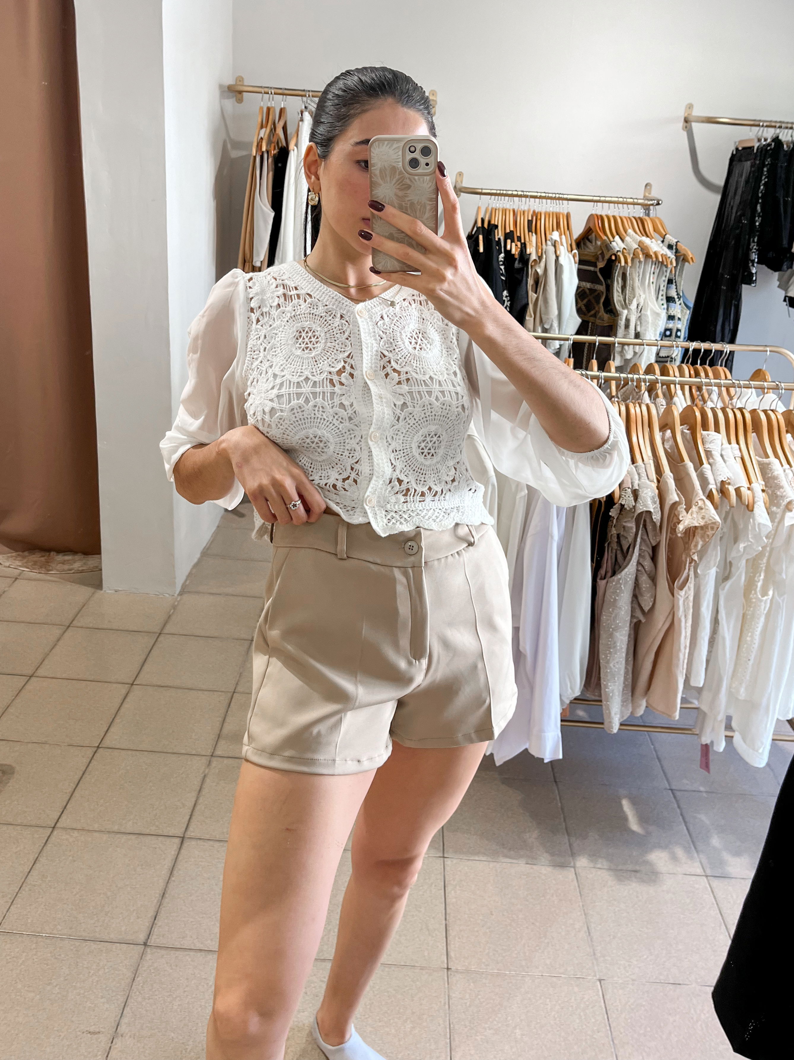 Short sastrero con bolsillos delanteros, cierre y botón.