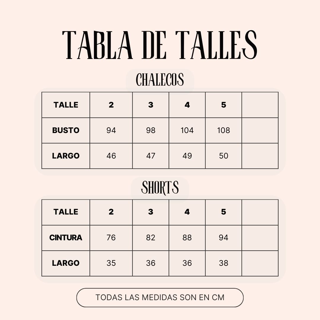 EL SET SE VENDE EN MISMO TALLE SHORT Y CHALECO